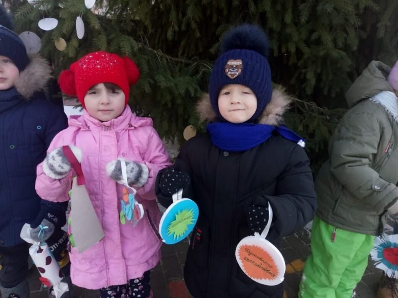 На протяжении двух выходных дней воспитанники МБДОУ – детский сад №22 «Солнышко» и их родители выполняли новое задание от дедушки Мороза. «Ёлка пожеланий», так называлось очередное задание. Ребята вместе с мамами и папами из разнообразного материала мастерили новогодние игрушки, и размещали на них Новогодние пожелания. Сегодня 28.12.2020 года, все авторские игрушки украсили зелёную красавицу на входе в детский сад. Дедушка Мороз прочитал каждое пожелание и Новогоднее поздравление, пообещав, что самое доброе и светлое обязательно исполнится в будущем году! Адвент – календарь продолжается……..