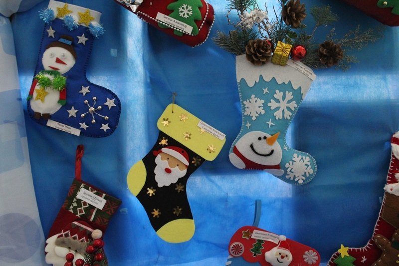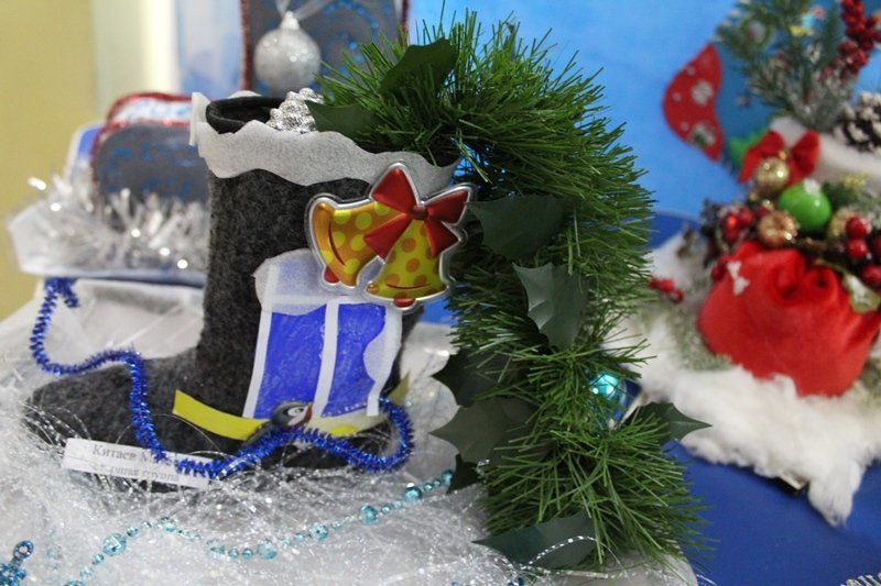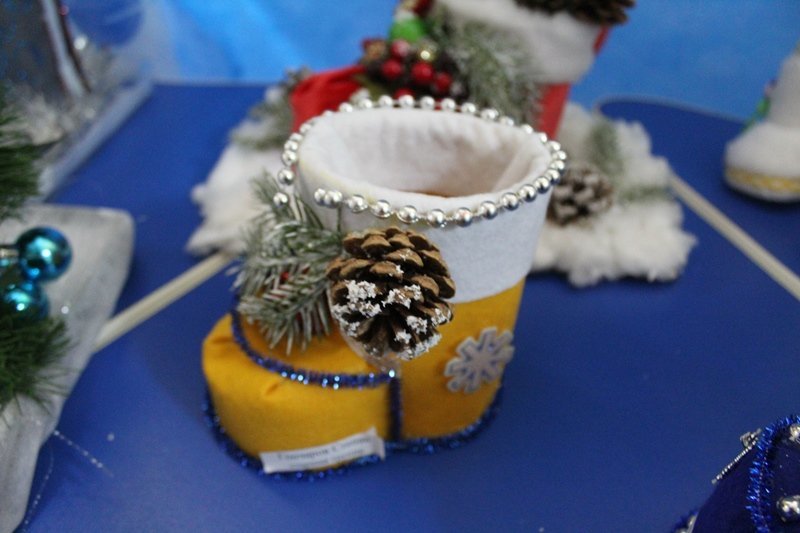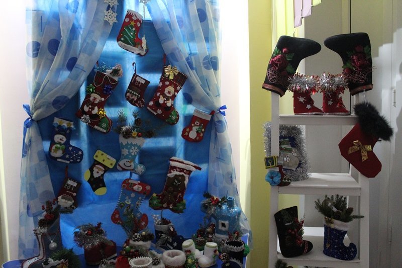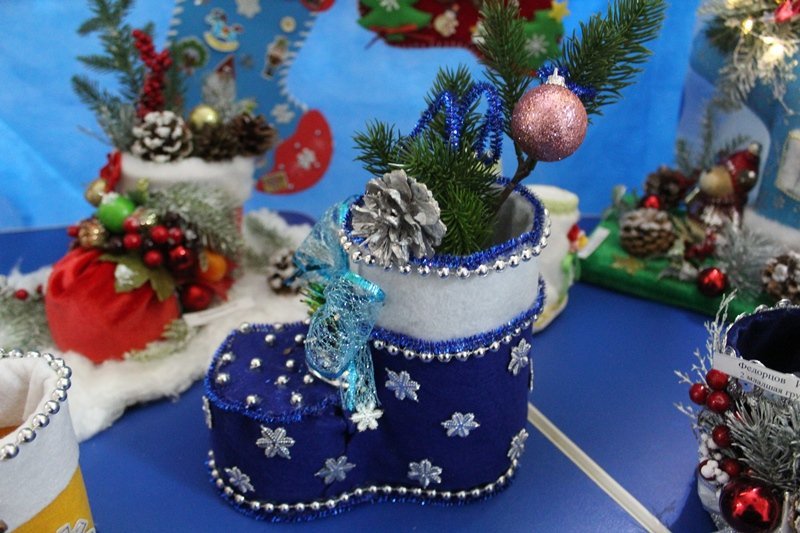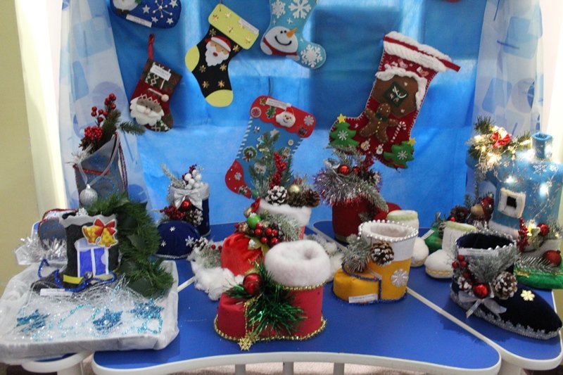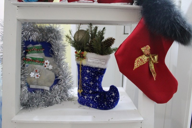 В этом году Новогодняя выставка декоративно – прикладного творчества детей и родителей прошла под названием «Эх, валенки, да валенки…..», и на ней можно было увидеть не обыкновенные валенки, а настоящие сапожки для дедушки Мороза!