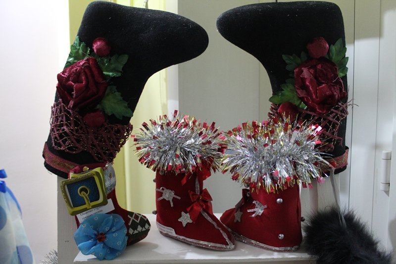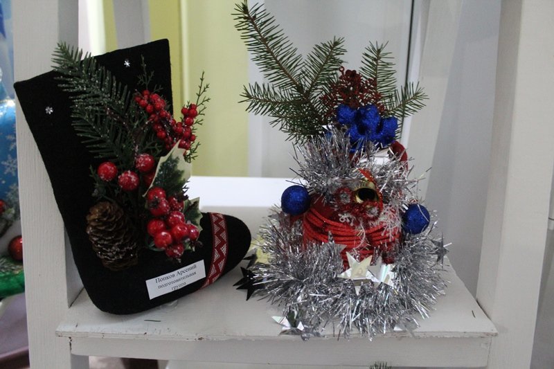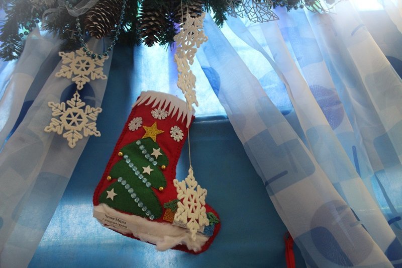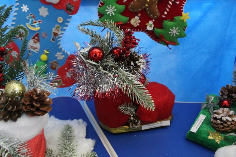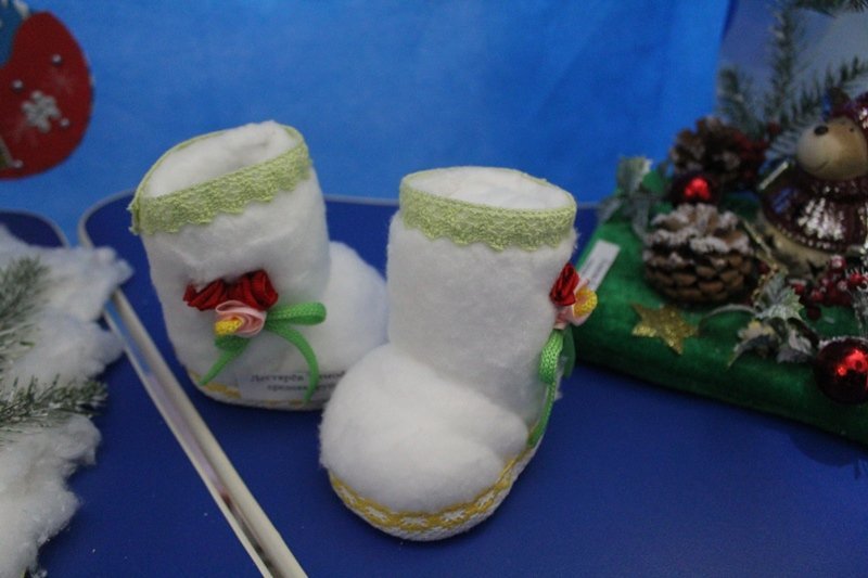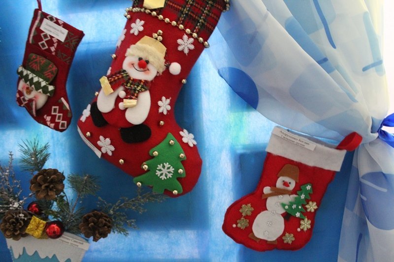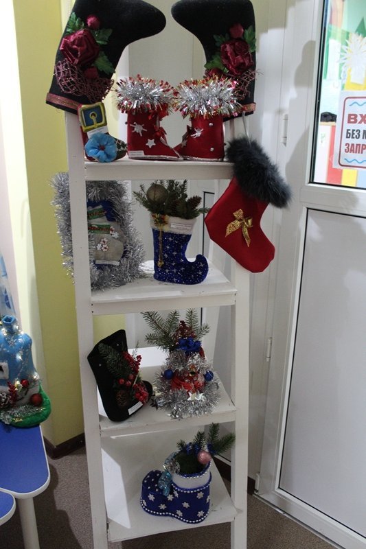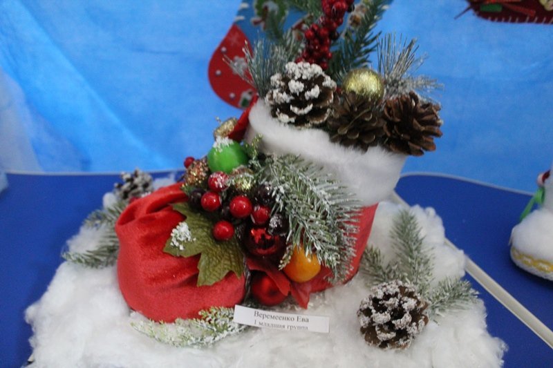В этом году Новогодняя выставка декоративно – прикладного творчества детей и родителей прошла под названием «Эх, валенки, да валенки…..», и на ней можно было увидеть не обыкновенные валенки, а настоящие сапожки для дедушки Мороза!