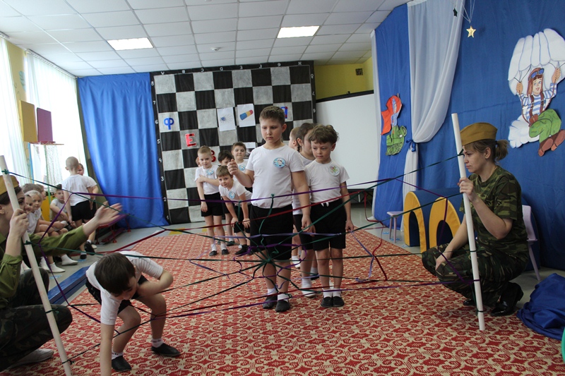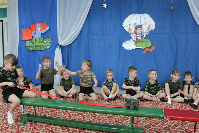 Спортивные команды старшей группы соревновались в ловкости, выносливости, быстроте и смекалке, мальчишки изо всех сил старались доказать девчонкам, что они достойны звания "Защитник отечества". В свою очередь воспитанников подготовительной к школе группы ожидали "взрослая школа жизни и армейские будни". Учебные действия, военная рокировка, стойкость и выносливость юных солдат помогли совершить 9 подвигов, а самое главное ребята смогли подобрать ключ и раскодировать название праздника настоящих мужчин. Спортивно – патриотический марафон "Быть как папа я хочу" завершён, наши мальчишки получили заслуженные подарки и благодарности!!!