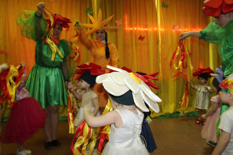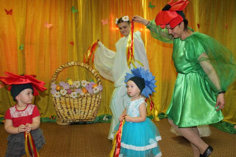 Малыши в костюмах полевых цветов и непоседливых птенцов радовались встрече с Красавицей Весной и Весёлым Солнышком. Все вместе танцевали, играли и пели песни о наших любимых мамах и бабушках. А так же, малыши стали первыми участниками флэш – моба "С улыбкой для мамы". Поэтому, милые наши мамочки 1 младшей группы, все сегодняшние улыбки только для вас!!!! Наш весенний флэш – моб продолжается, кто с нами????