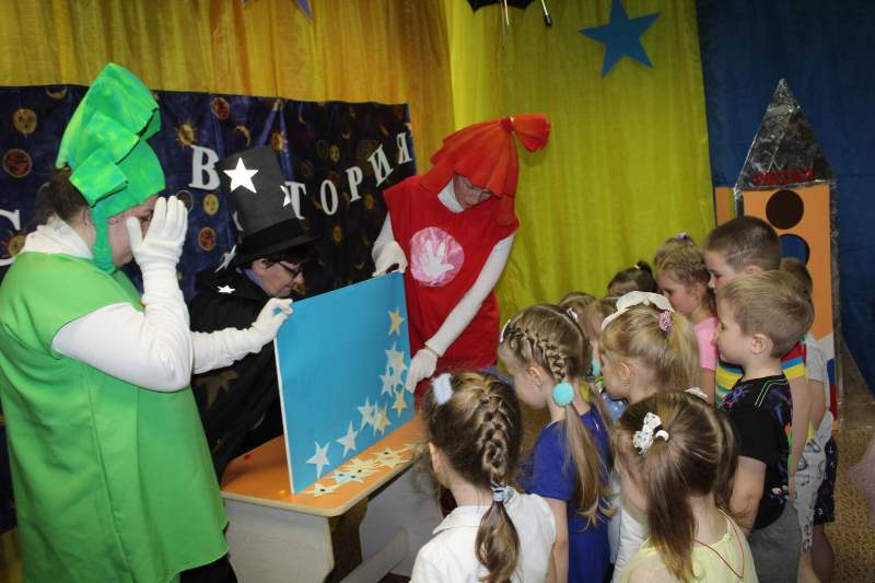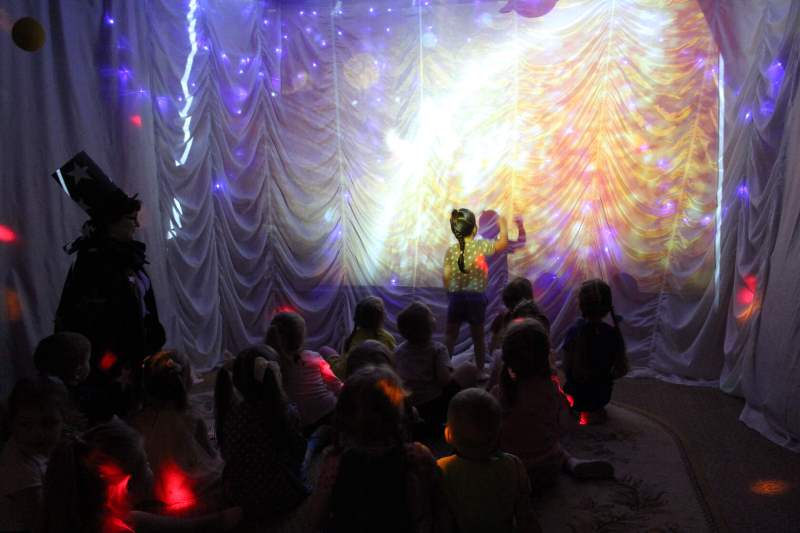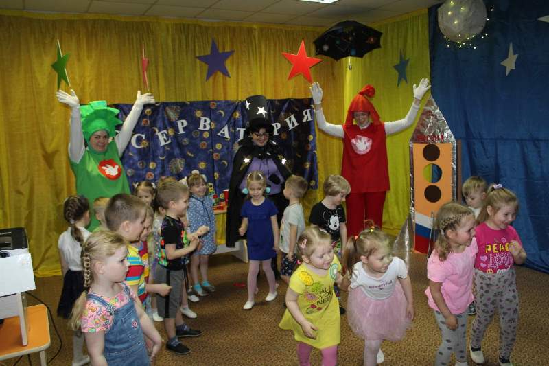 12 апреля 2021 года в День космонавтики всех воспитанников нашего детского сада ожидал необычный сюрприз. В музыкальном зале появился настоящий планетарий, который для ребят соорудили педагоги ДОУ. Во время увлекательного путешествия по космическим просторам в гости к воспитанникам среднего дошкольного возраста заглянули необычные человечки – Фиксики. Вместе с Фиксиками и главным профессором звёздных наук ребята посетили космическую обсерваторию, в которой их ожидали увлекательные опыты и звёздные эксперименты.