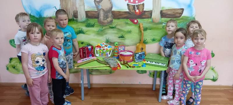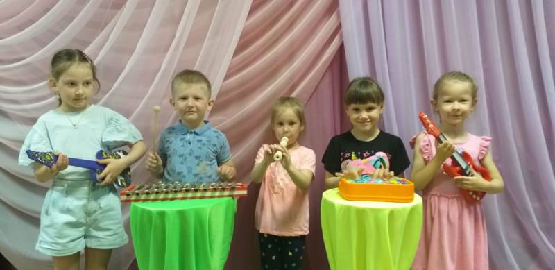 Сегодня, с утра и до вечера детский сад переполнялся разнообразными музыкальными звуками. В музыкальном зале и на улице играли шумовые оркестры, ребята знакомились с новыми музыкальными инструментами и закрепляли знания о хорошо знакомых (погремушка, маракасы, металлофон, бубен, барабан и т.д.) В тени на лавочках, велись беседы о композиторах и их значении в мире музыки. Малыши водили хороводы и участвовали в играх музыкальной направленности. Воспитанники средней группы проявили свои творческие способности в художественно – эстетической деятельности создав народный оркестр из авторских балалаек.