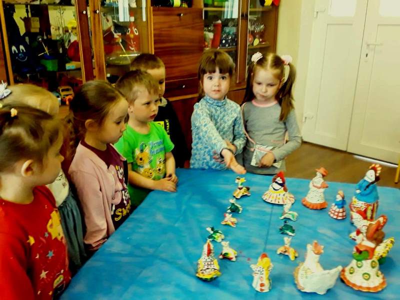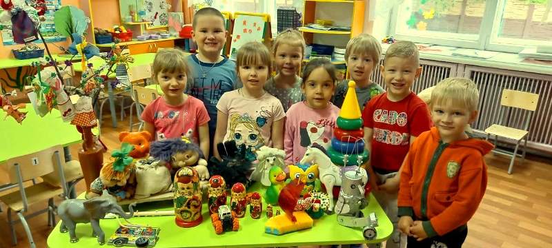 Каждая возрастная группа подошла к теме сегодняшнего дня индивидуально и особенно. В театральной студии вместе со сказочными героями Машей и Мишей малыши играли со своими любимыми игрушками. В изостудии открылась творческая мастерская по изготовлению дымковского козлика, в которой мастерили воспитанники второй младшей группы. Ребята средней группы устроили мастерскую прямо в группе и посетив мини – музей детской игрушки, принялись лепить свои игрушки из пластилина. В музыкальном зале прошла выставка "Моя любимая игрушка", которую организовали мальчишки и девчонки старшего дошкольного возраста. Ребята читали стихи о своих игрушках, а в завершении совместного события устроили танцевальный флешмоб со своими любимцами. Старшие дошкольники из подготовительной группы посетили комнату "Русской избы", совершив экскурсию в прошлое, они познакомились с игрушками разных столетий и куклами в традиционных костюмах разных областей России, по возвращению в группу они изготовили своих авторских бумажных куколок. Совместное творчество и "море" положительных эмоций свидетельствуют о том, что играть в игрушки, люди любят в любом возрасте, не только в дошкольном!!!