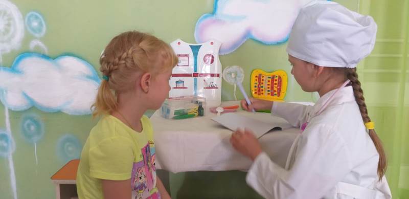 В преддверии праздника, 16.06.2021 года в МБДОУ – детский сад №22 "Солнышко" прошёл тематический день "День Медицинского работника и здоровья". Воспитанники и педагоги детского сада совершили познавательные экскурсии в медицинский кабинет ДОУ и ближайшую аптеку. Девочки подготовительной к школе группы сконструировали из бумаги "Чемоданчики медработника", которые потом подарили для игры малышам. В каждой возрастной группе развернулись детские поликлиники и медицинские центры, в которых приёмы осуществляют будущие врачи и медсёстры. Малыши с большим интересом приняли участие в проблемной ситуации "Что болит?"
