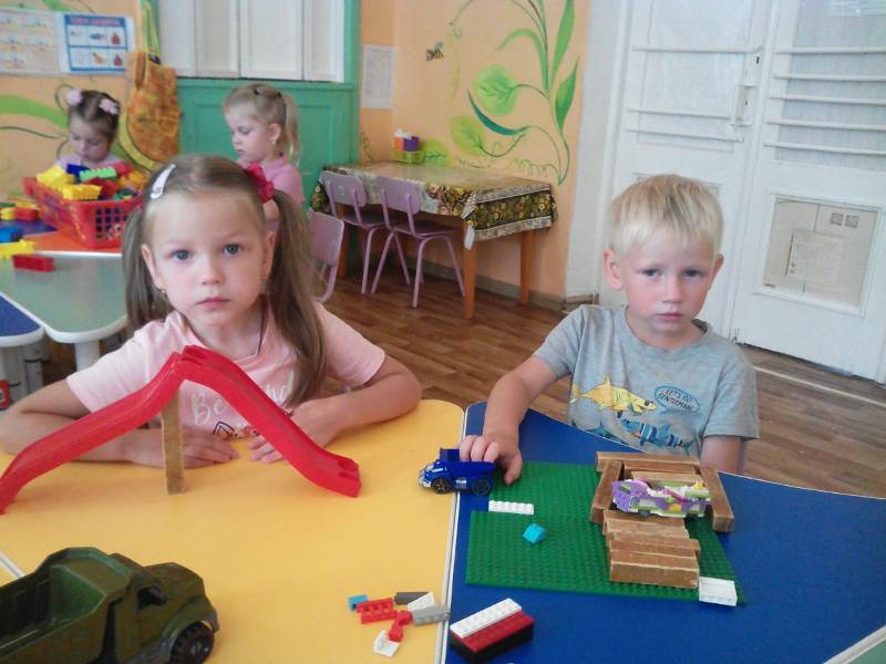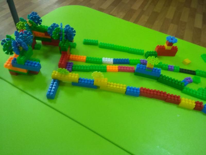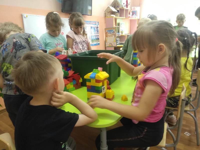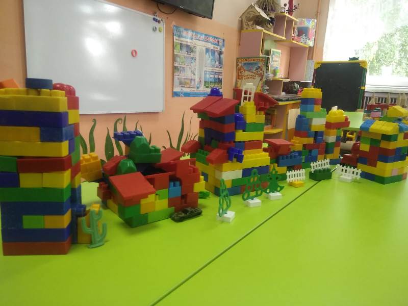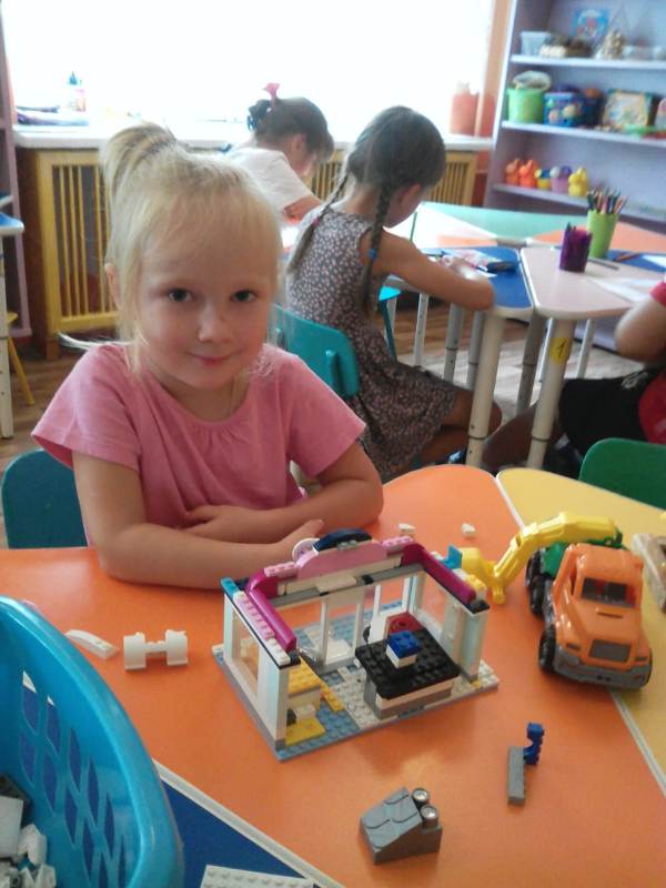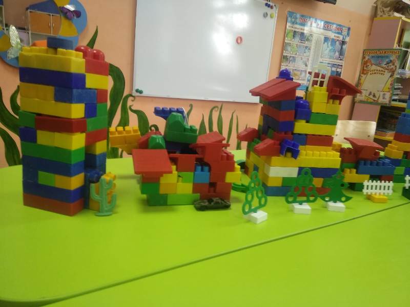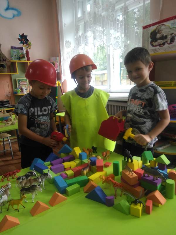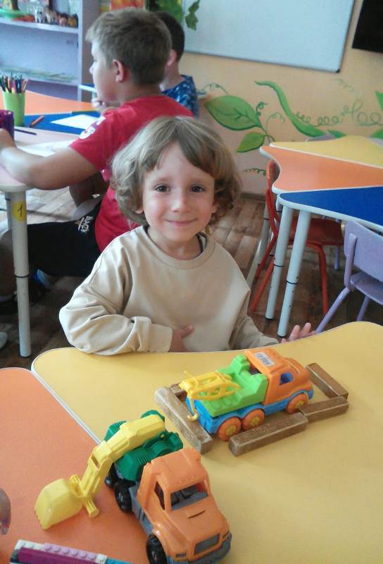 Ну и какое же строительство без самих строителей? С энтузиазмом (присущим, наверно, только детям) юные строители принялись за дело. Какие удивительные постройки получались у ребят: они охотно пользовались различными материалами – конструктором сери LEGO, пластиковыми модулями, деревянными кубиками, а детали "подвозились" на различных машинах: грузовиках, самосвалах.