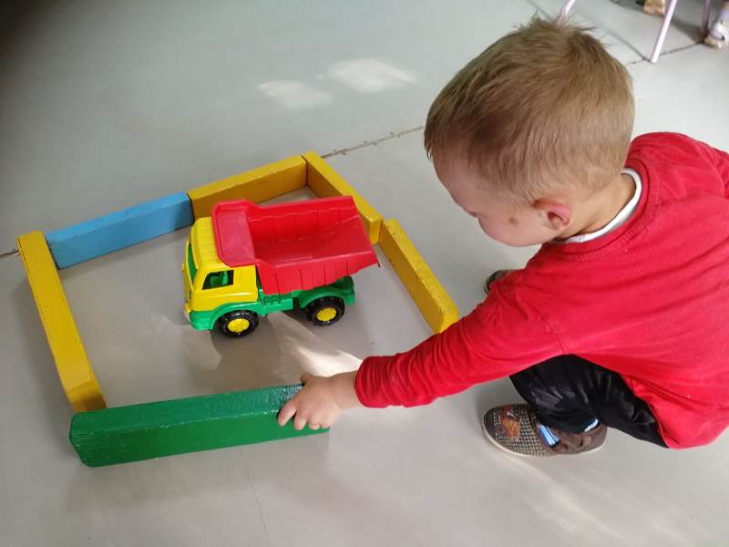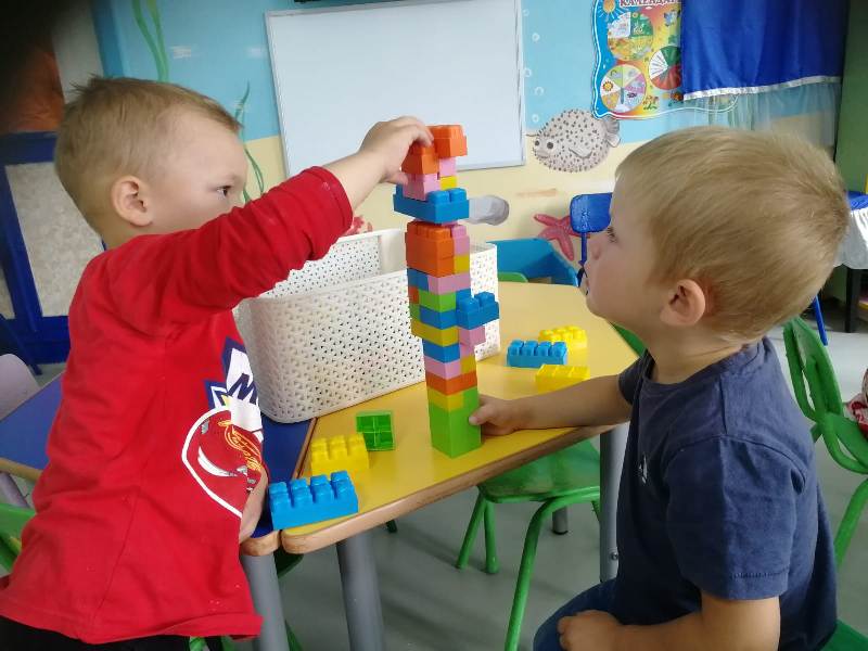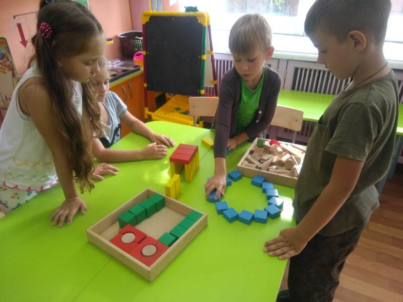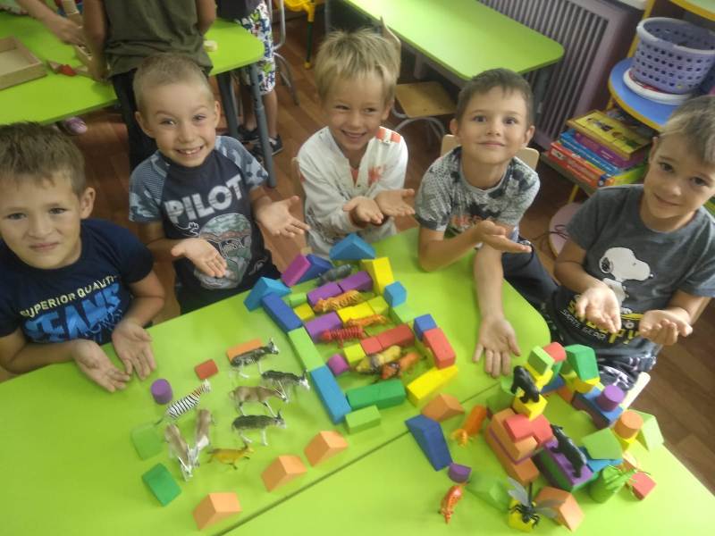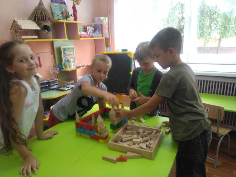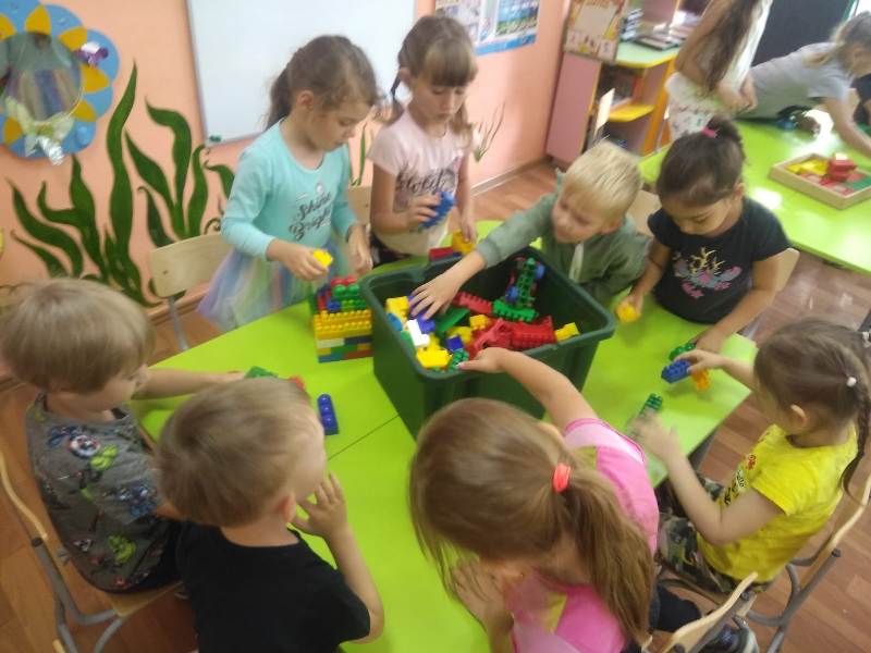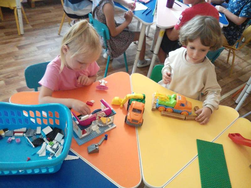 Ну и какое же строительство без самих строителей? С энтузиазмом (присущим, наверно, только детям) юные строители принялись за дело. Какие удивительные постройки получались у ребят: они охотно пользовались различными материалами – конструктором сери LEGO, пластиковыми модулями, деревянными кубиками, а детали "подвозились" на различных машинах: грузовиках, самосвалах.