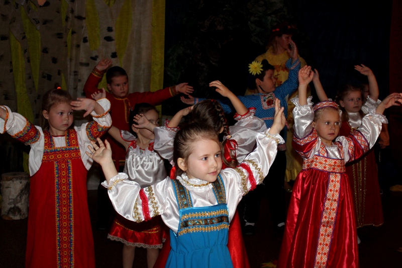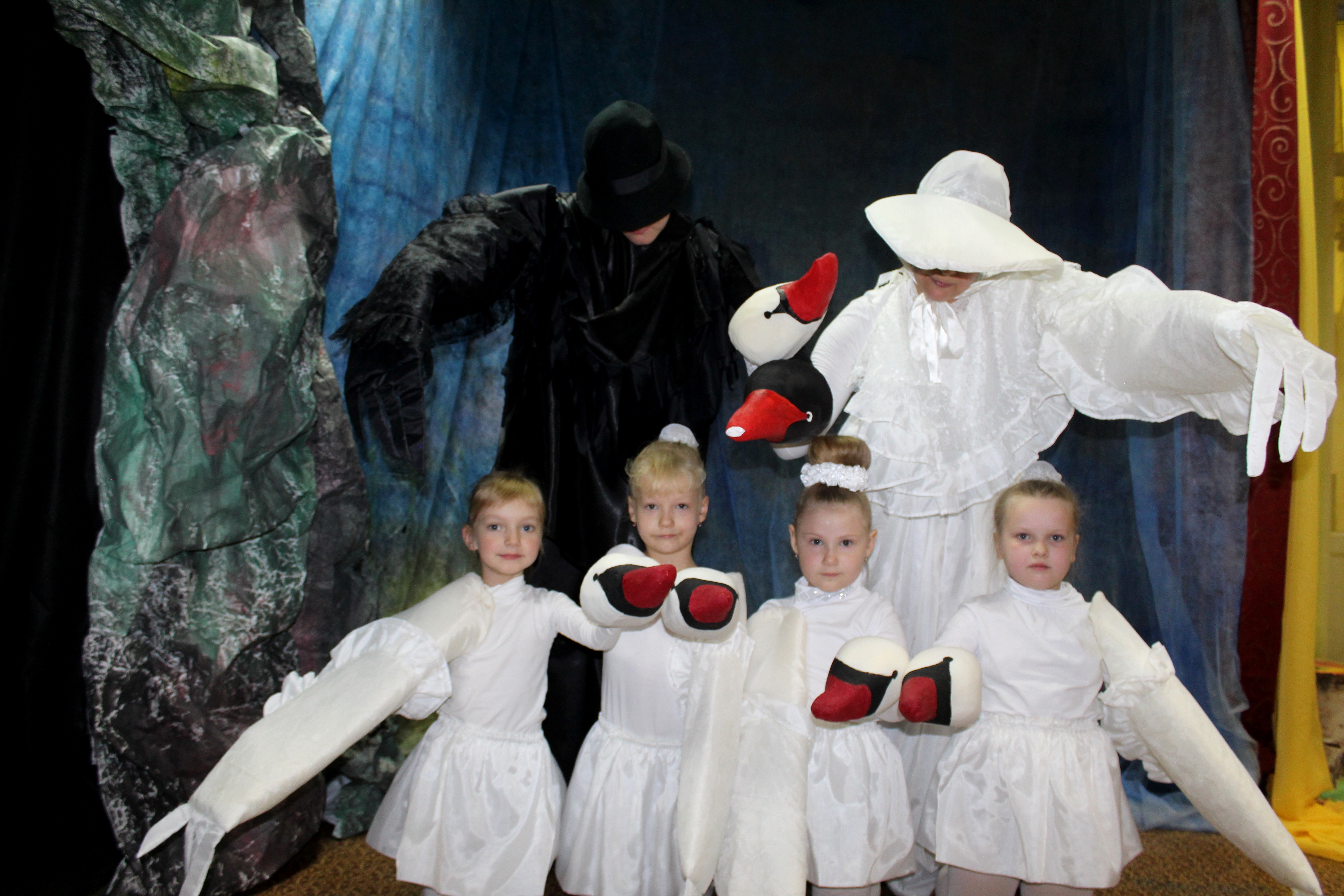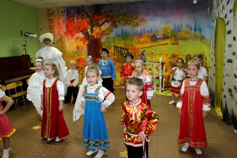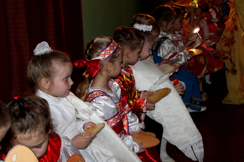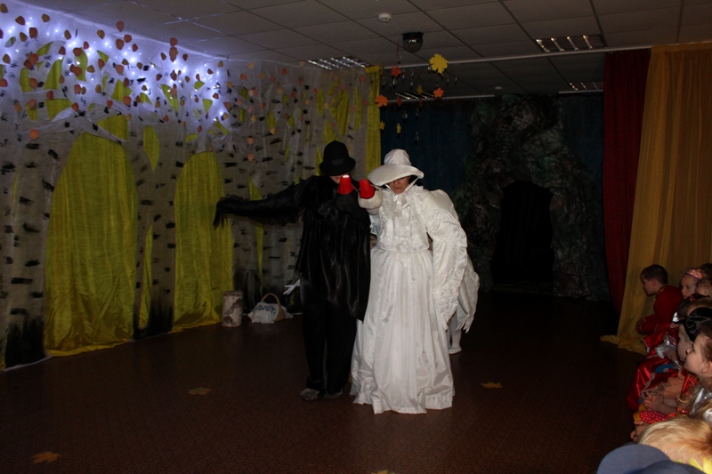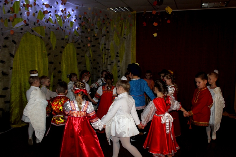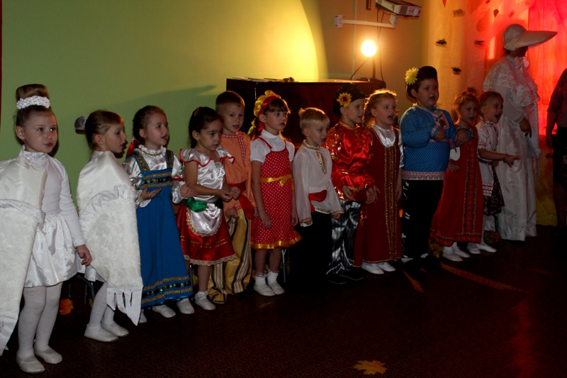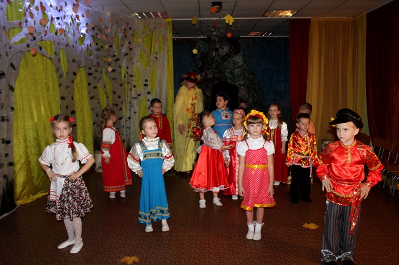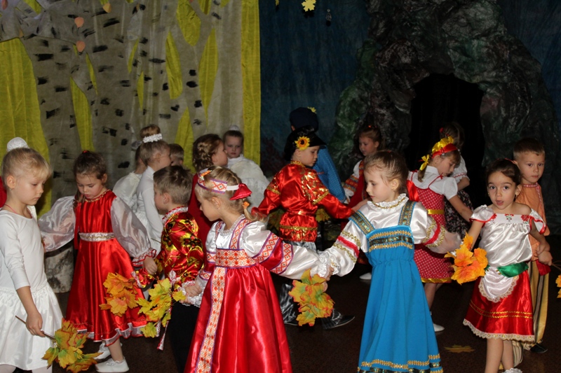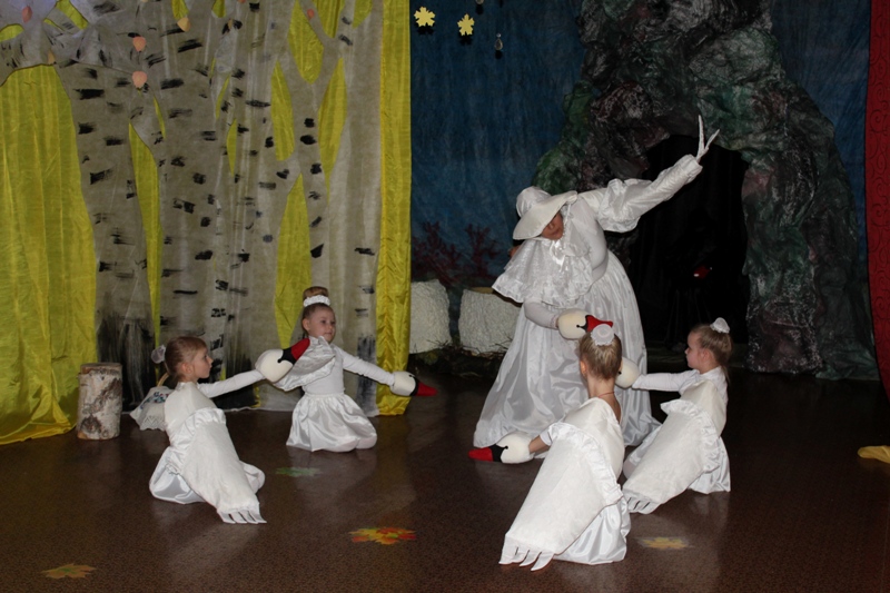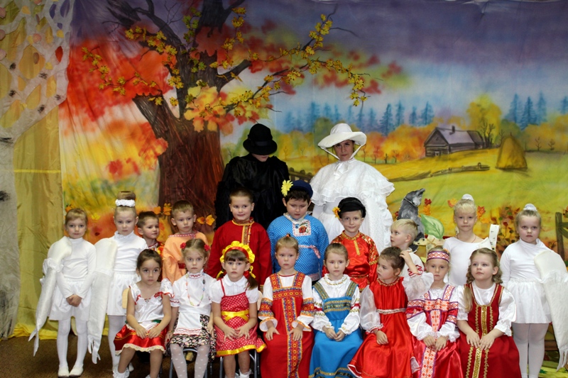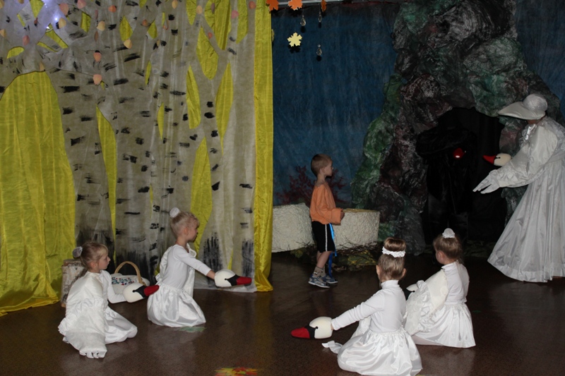 Красавица Осень перенесла всех ребят в необычную сказку, в которой их встретили утка Ли – Ли, курица Зу – Зу и индюк Болтун. Как оказалось в дальнейшем, Осень рассказывала сказку Ганса Христина Андерсона - "Гадкий утёнок". Вместе с его главными персонажами ребята побывали на птичьем дворе, помогли Ли – Ли отобрать яйца с цыплятами и утятами, встретили свободолюбивых лебедей и приняли участие в настоящем Осеннем волшебстве. На протяжении всей сказки ребята сопереживали Гадкому Утёнку и громко ликовали, когда он превратился в прекрасного лебедя. Народные песни и танцы добавили особенного колорита нашей сказке.
