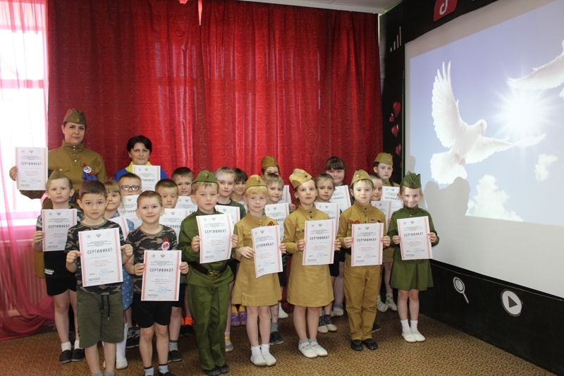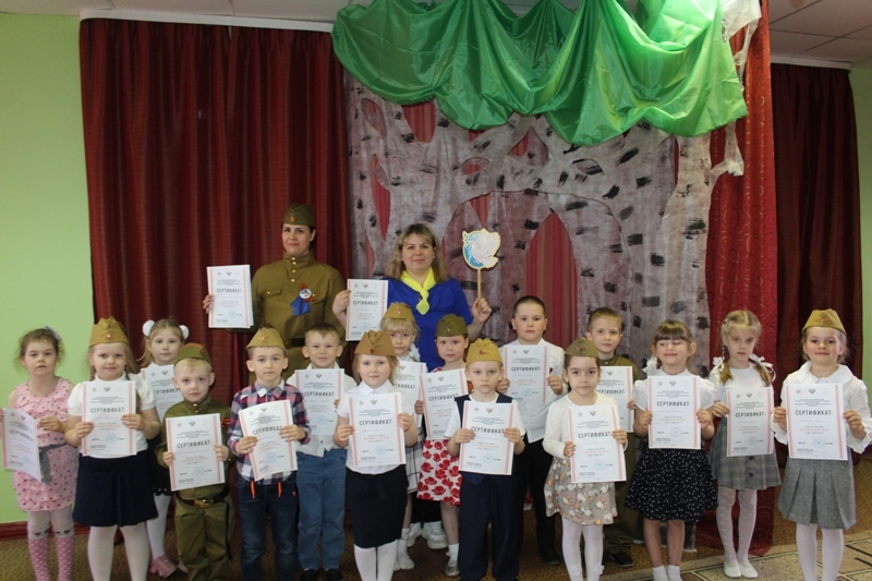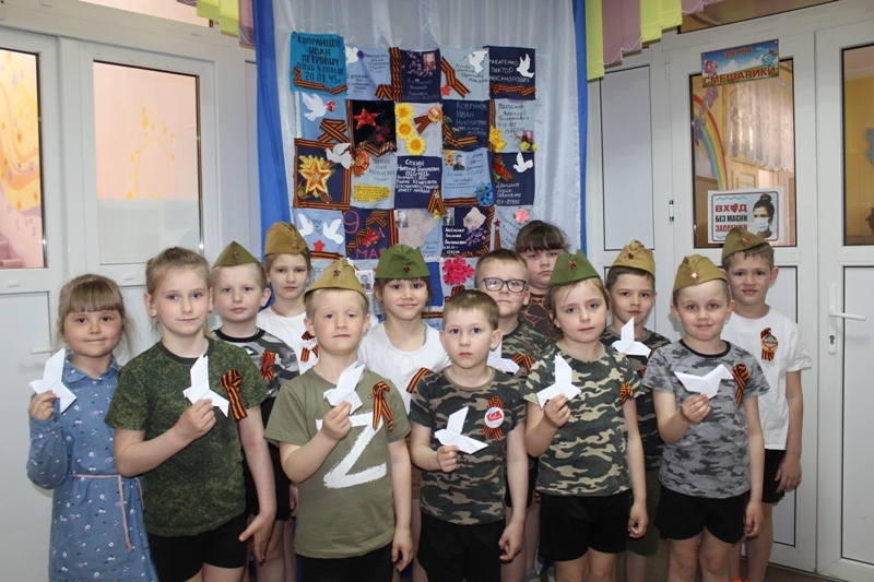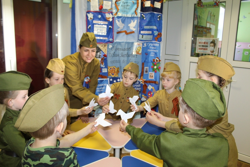Коллектив детей и педагогов принял активное участие в проведении Всероссийского урока Победы для детей дошкольного возраста "Птица мира на защите Родины".