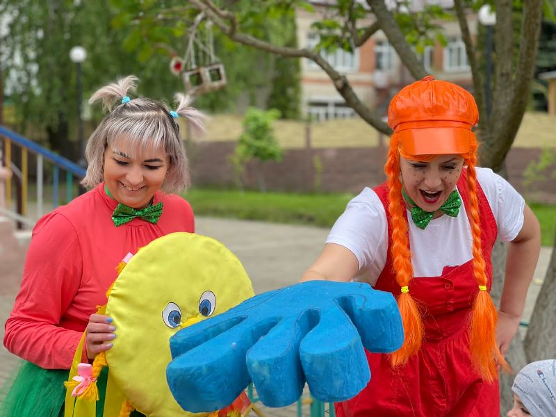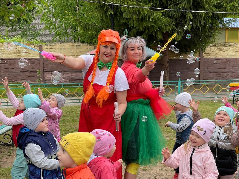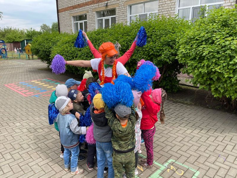 Яркие эмоции и летнее настроение подарили ребятам клоунессы Жужа и Муха. В поисках солнечного настроения цветка-счастья, ребята исполняли зажигательные флешмобы, играли в весёлые игры, танцевали забавный танец ног "Зверобика", побывали на вернисаже и разгадали тайну заколдованных "Живых портретов", на мастер-классе по твистингу научились скручивать весёлые фигурки из воздушных шаров, а сказочное шоу мыльных пузырей оставило незабываемые яркие эмоции.