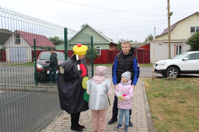 Наступление нового учебного года знаменуется увеличением количества детей с родителями на дорогах и, как следствие, возрастанием дорожно-транспортных происшествий с их участием. В связи с чем, 08.09.2022 года педагоги детского сада №22 "Солнышко" организовали для семей воспитанников просветительскую акцию "Мы – за безопасность на дорогах!". В рамках акции Светофор Светофорыч и ребята подготовительной к школе группы раздали брошюры "Для чего нужны световозвращающие элементы" и "Автокресло для ребёнка", тем самым напомнив родителям, что жизнь и безопасность детей на дорогах в первую очередь зависит от их соучастия и личного примера.