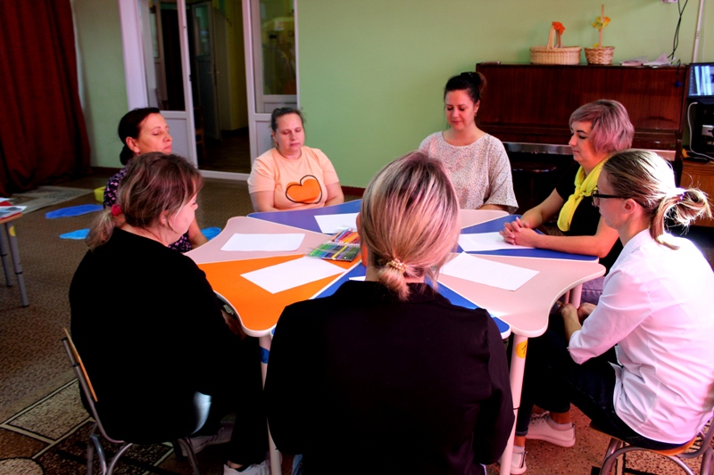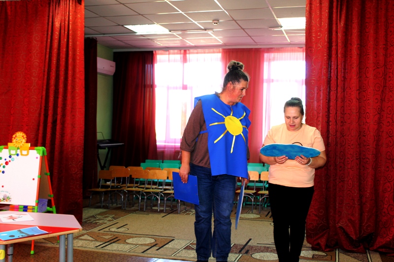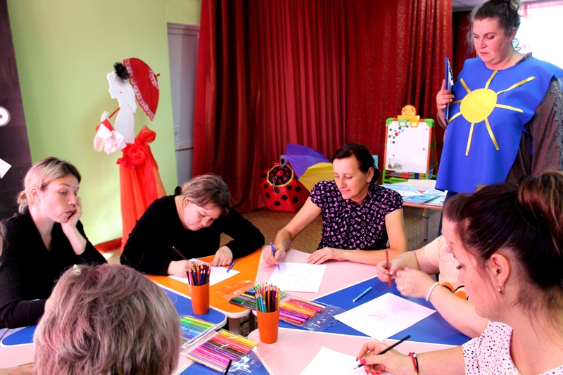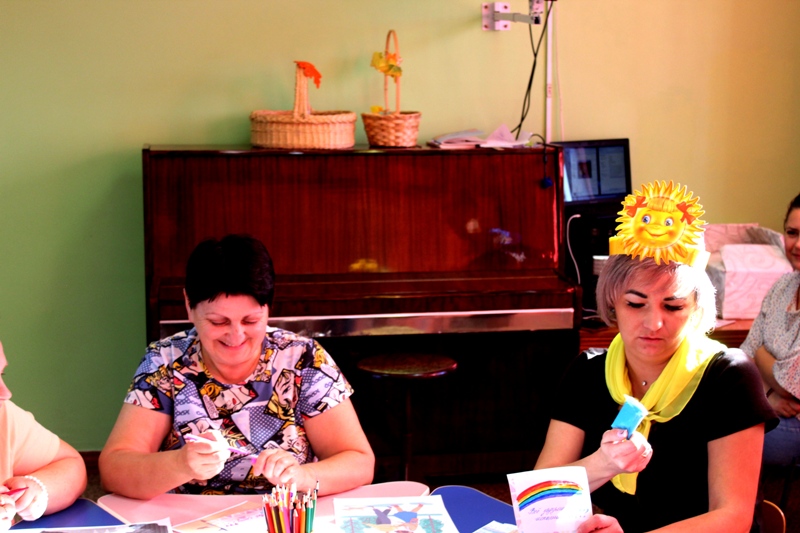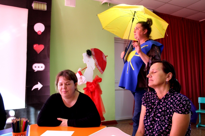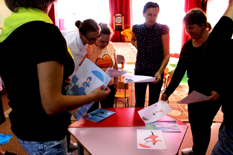 В процессе тематических упражнений тренинга воспитатели смогли проанализировать трудные жизненные ситуации через вымышленную призму "Осеннего дождя", оценить имеющиеся ресурсы для борьбы с трудностями на примере работы с метафорическими картинками "Зонтики" и примерить "Калоши счастья".