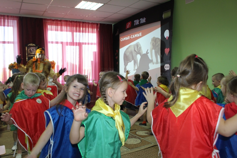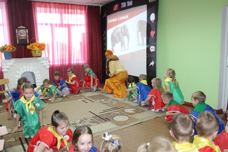 В ходе познавательного экологического урока ребята узнали: какие рекорды ставят животные, сколько слонов поместится на спине кита, отыскали белого медведя на льдине, измерили шею самого длинного жирафа и приняли участие в настоящей "Звериной гимнастике".
