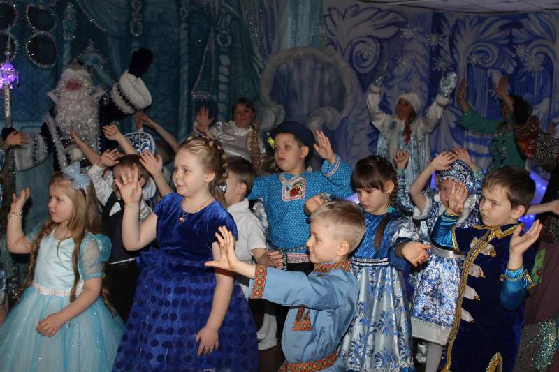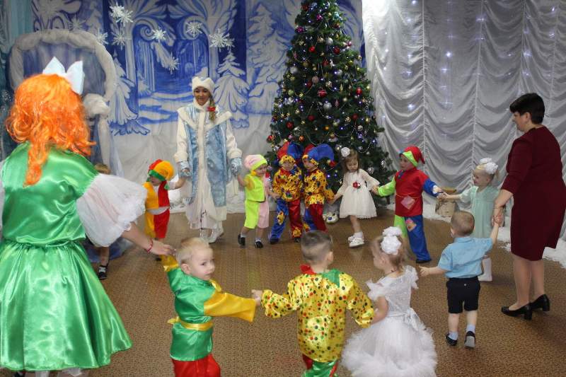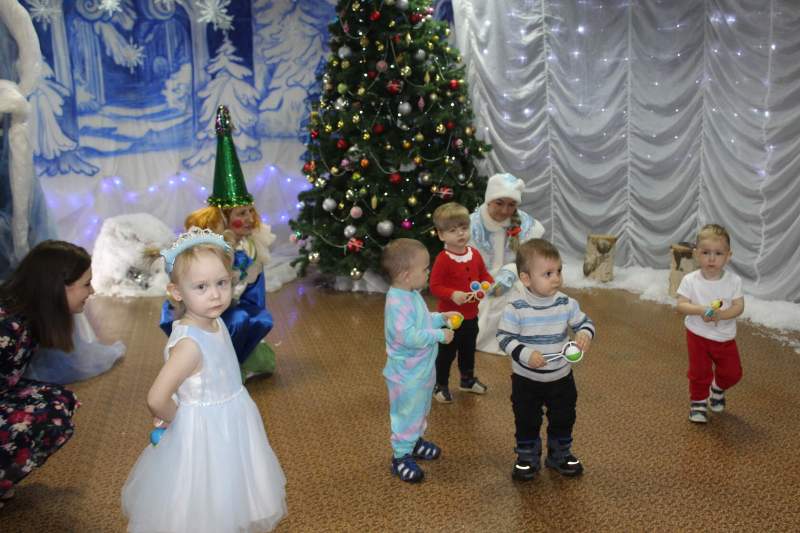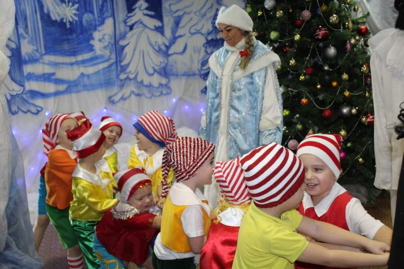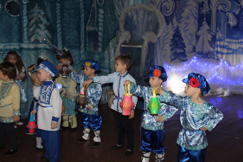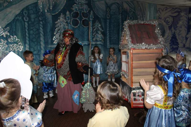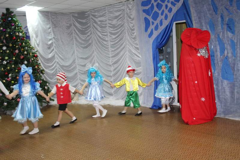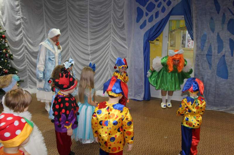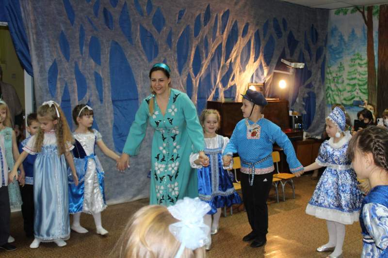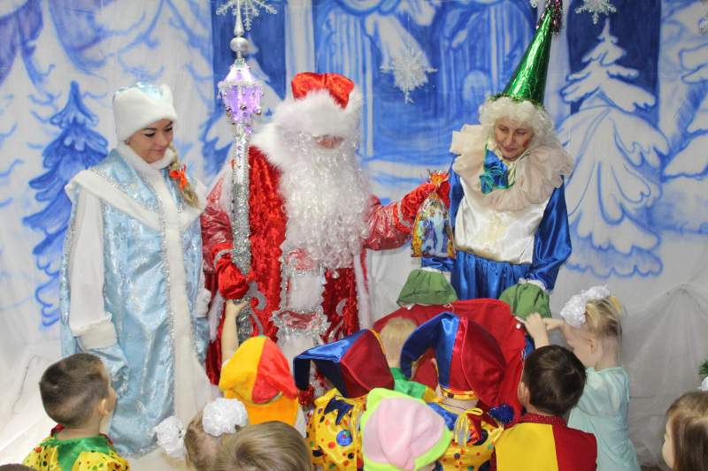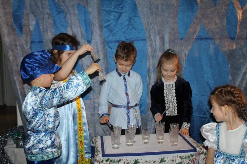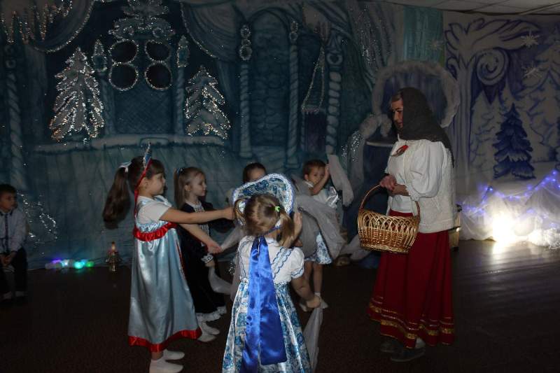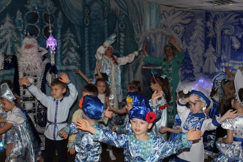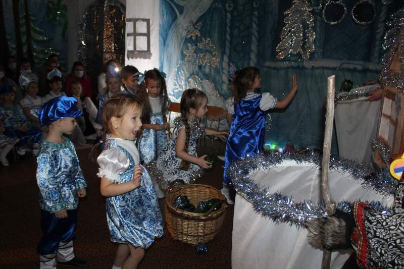 Малыши водили хороводы вместе с Петрушкой и Куколкой. Ребята среднего дошкольного возраста вместе с Буратино и его друзьями победили Карабаса Барабаса и узнали секрет волшебного ключика. Воспитанники старшего дошкольного возраста оказались в русской народной сказке "Морозко". Благодаря детской дружбе, доброте и взаимопомощи добро победило злую Мачеху и Марфушу, а Настенька стала внучкой дедушки Мороза.