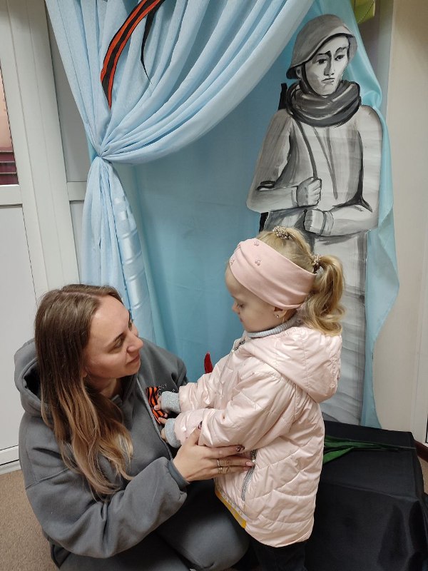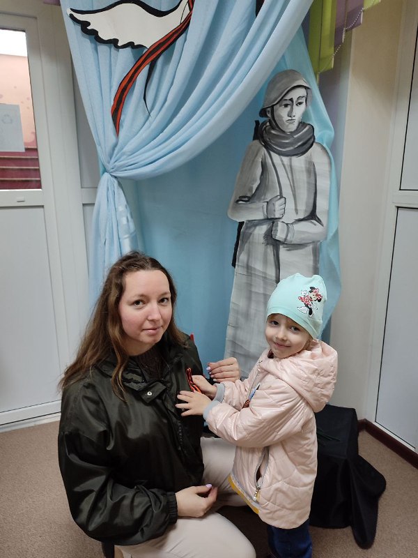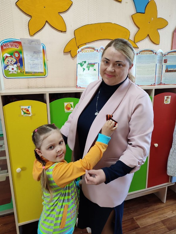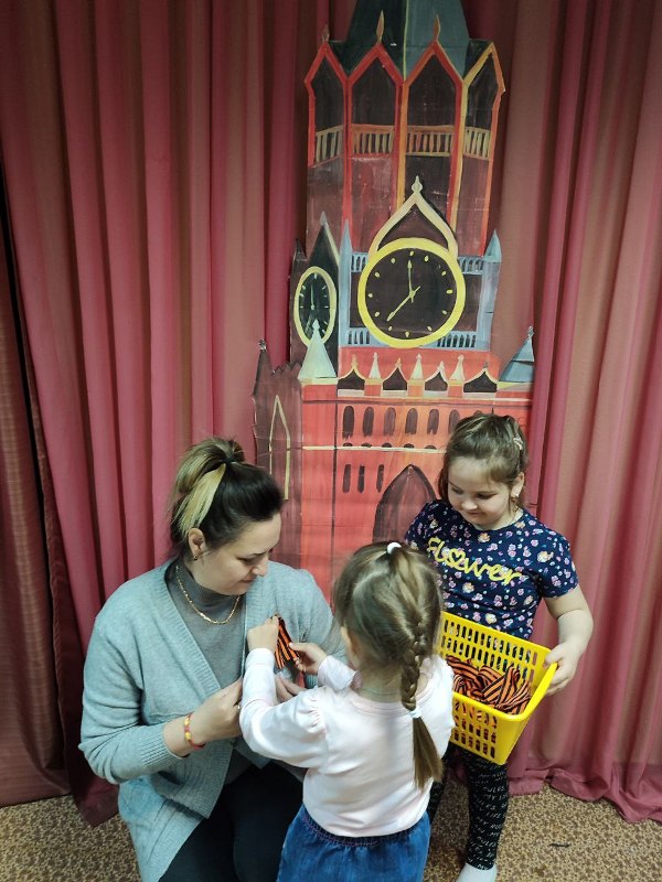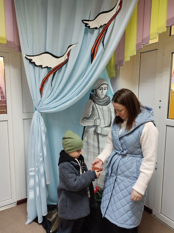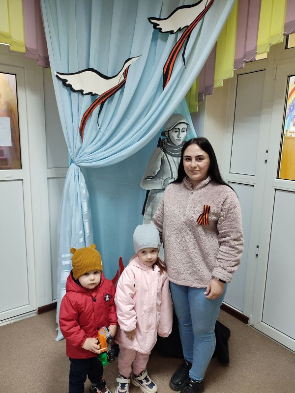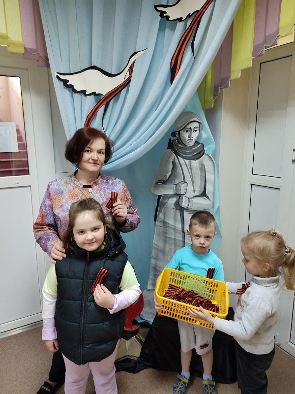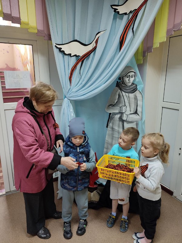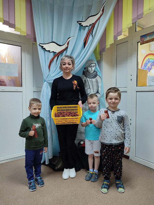 С самого утра в холле детского сада стартовала акция «Георгиевская ленточка». Акция «Георгиевская ленточка» – это эстафета от прошлых поколений к нынешним. Эстафета народной памяти, уважения к подвигам отцов, дедов, прадедов, эстафета готовности защитить свою землю, свой народ, свой язык, свое имя!