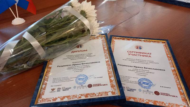 Сегодня, 11 июля 2023 года, в Региональном отделении Партии "Единая Россия" г. Брянск состоялось торжественное награждение ПОБЕДИТЕЛЕЙ регионального этапа акций партийного проекта "Мир возможностей". Детский сад №22 "Солнышко" признан региональным победителем акции "Ценности будущего в традициях народной культуры" (куратор акции – Разумеева Ирина Вячеславовна, старший воспитатель МБДОУ – детский сад №22 «Солнышко»).