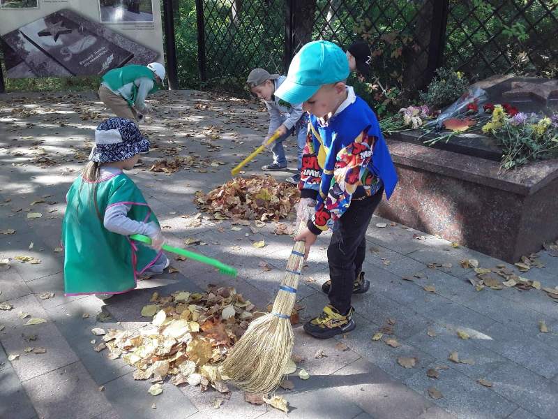 Отряд волонтёров "Солнышко" убрал опавшую листву на мемориальном комплексе в парке им.Ленина.