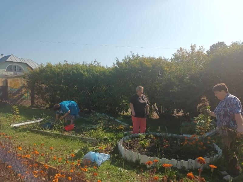Ребята старшей и средней групп собрали урожай со своих грядок, а малыши заготовили семена однолетников на будущий год.
