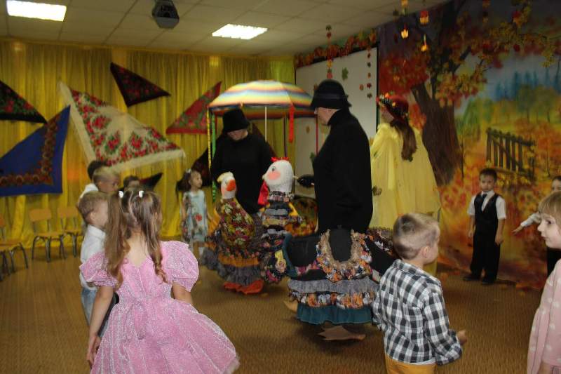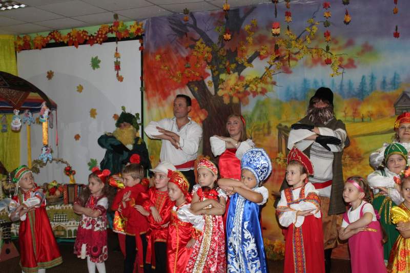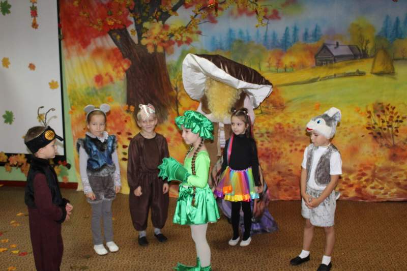 Первый осенний праздник у малышей, сказка «Под грибом» для второй младшей группы, кукольное представление и птичий двор у воспитанников средней группы и в завершении авторская музыкальная сказка по мотивам сказки «Аленький цветок» С. Т. Аксакова.