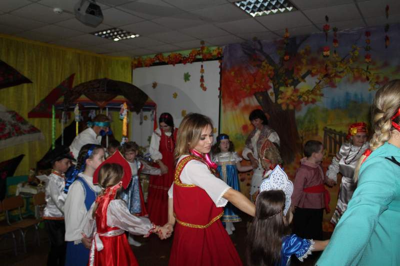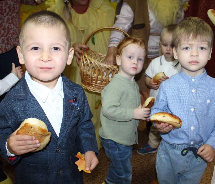 В музыкальном зале осенний листопад, дети в ярких костюмах, родители наши главные помощники и участники праздника, тёплая атмосфера, осенние песни и хороводы, весёлые игры и забавы, румяные пирожки для ребят, звонкий смех и счастливые глаза всех присутствующих.