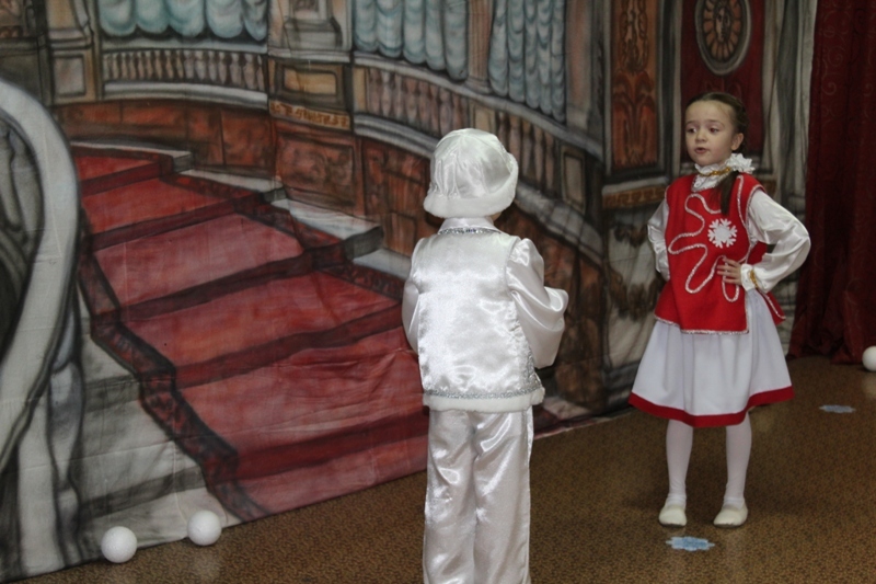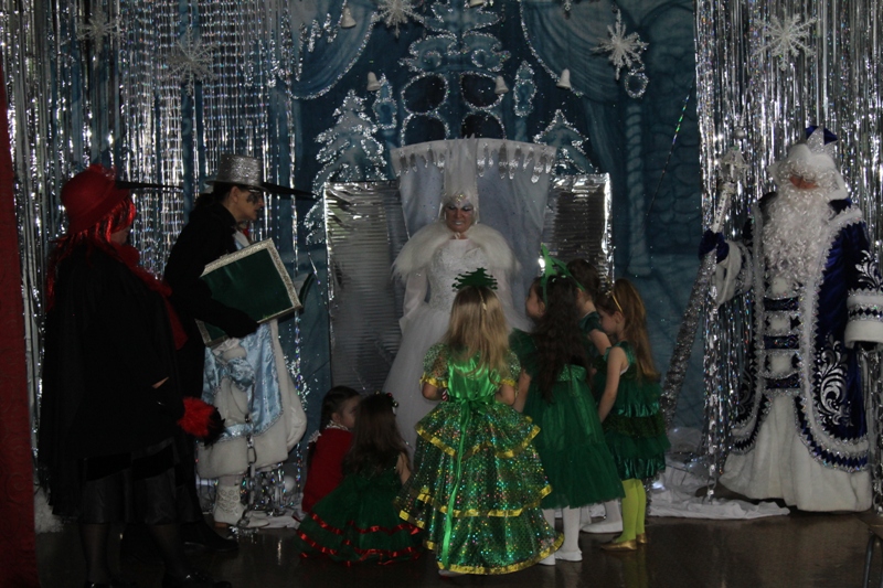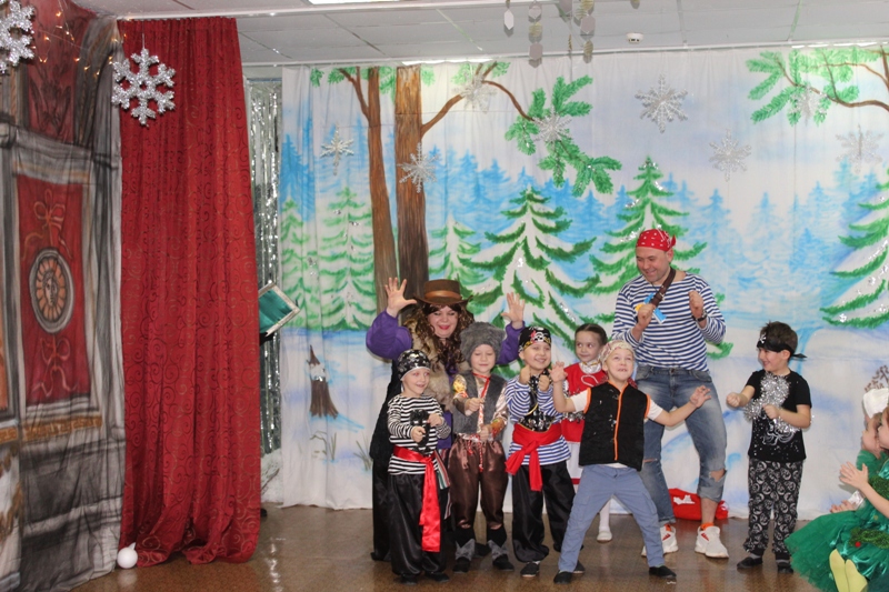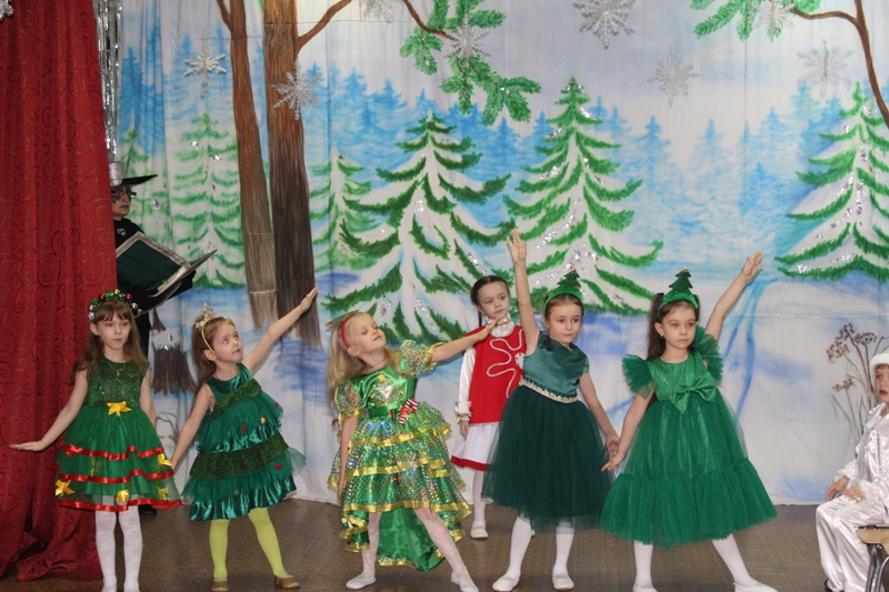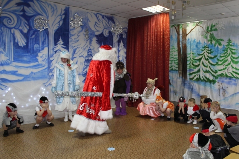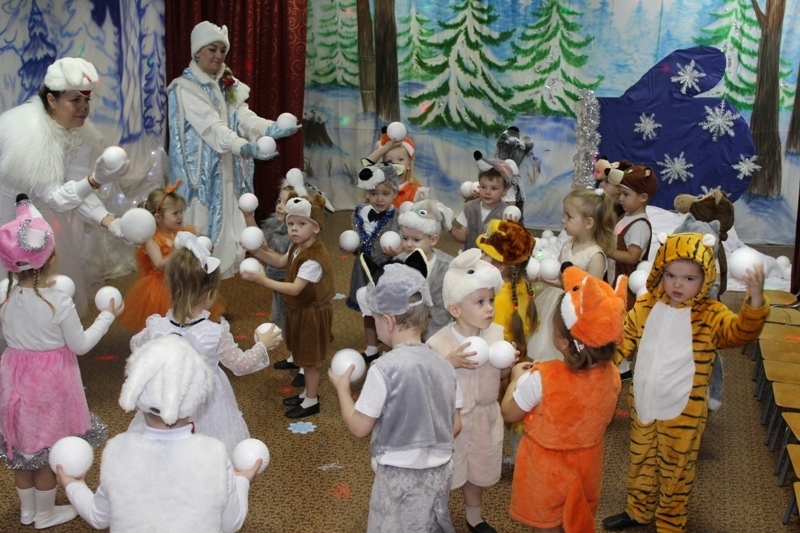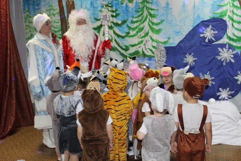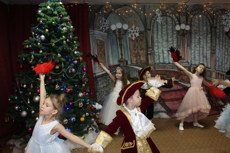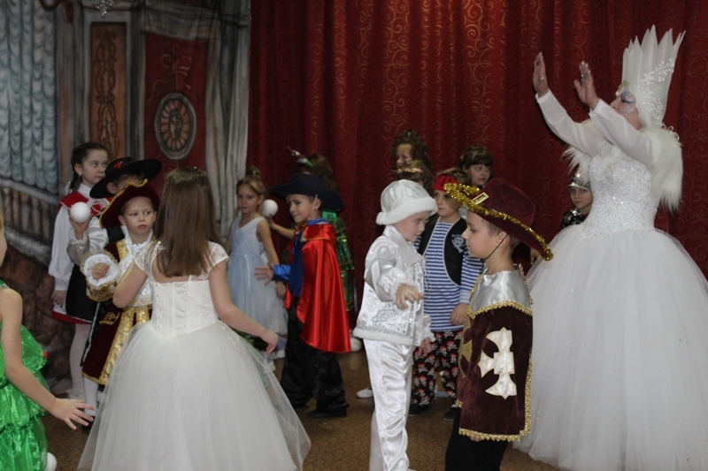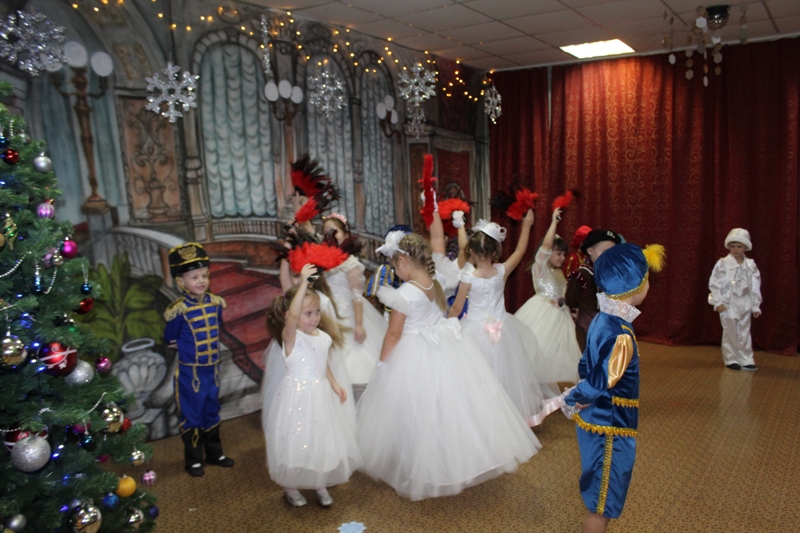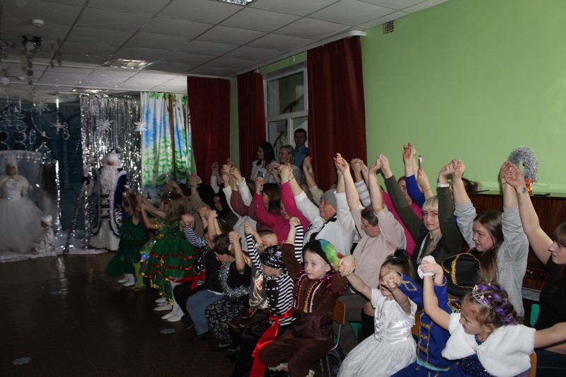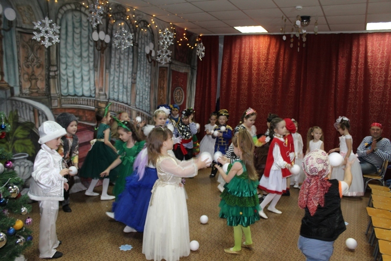 Сказочно украшенный музыкальный зал, сверкающие огоньки, нарядная ёлка, увлекательные танцы и хороводы, весёлые игры подарили ребятам и их родителям праздничное новогоднее настроение. Родители вместе с детьми водили хороводы, танцевали, принимали активное участие в играх.