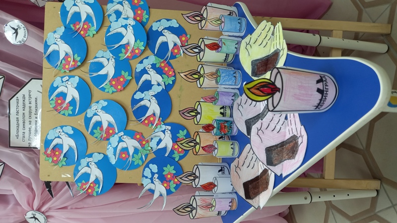 В рамках акции, ребята вместе с папами и мамами, «зажгли» бумажную «Свечу Памяти», «запустили» в голубое небо «Блокадную ласточку», которая несёт в клюве письмо – Мира, надежды и добра, а также педагоги рассказали участникам акции, что символизирует ладонь, с маленьким кусочком хлеба.