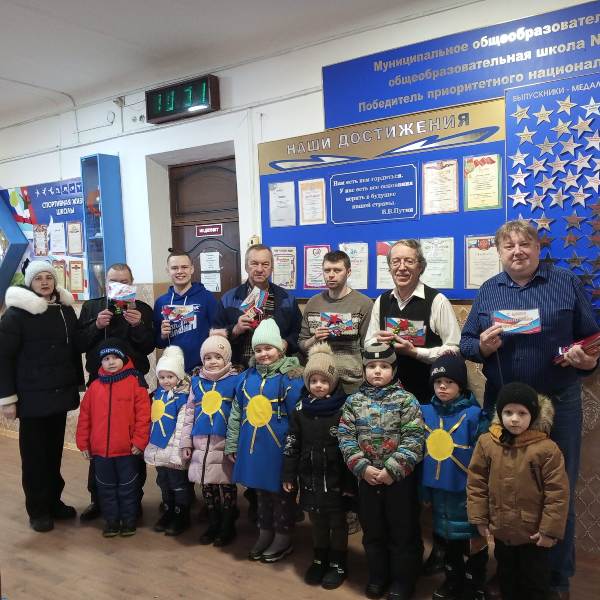 21 февраля 2024 года воспитанники старшего дошкольного возраста МБДОУ – детский сад №22 «Солнышко» присоединились к социально – значимой акции, и поздравили авторскими открытками – флажками, памятными сувенирами и трогательными поздравлениями мужские коллективы (МБОУ - СОШ №3 им. С. Орджоникидзе, пожарной части и станции технического обслуживания).