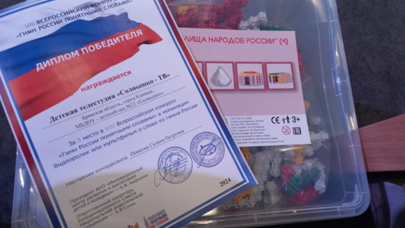 УРА! Итоги объявлены! Юные мультипликаторы детской телестудии «Солнышко – ТВ» МБДОУ – детский сад №22 «Солнышко» г.Клинцы Брянской обл., награждены дипломом победителя третьей степени и памятными подарками.