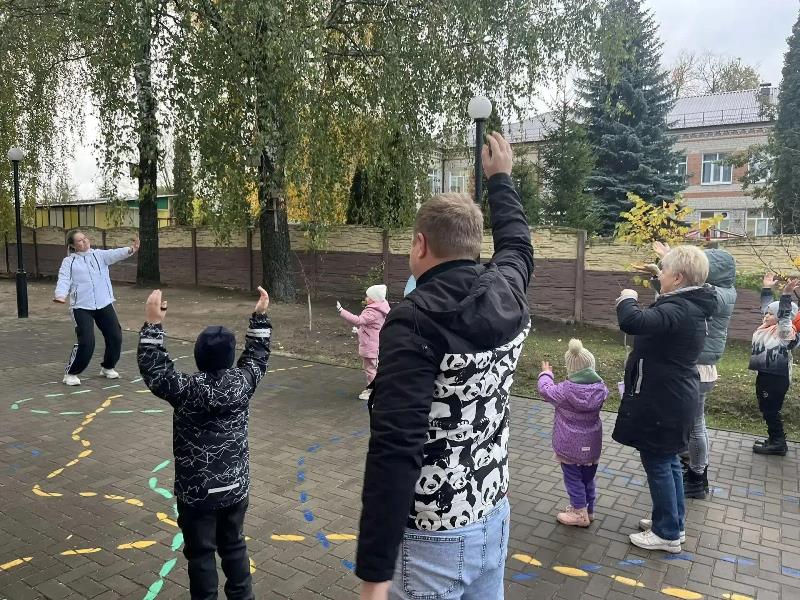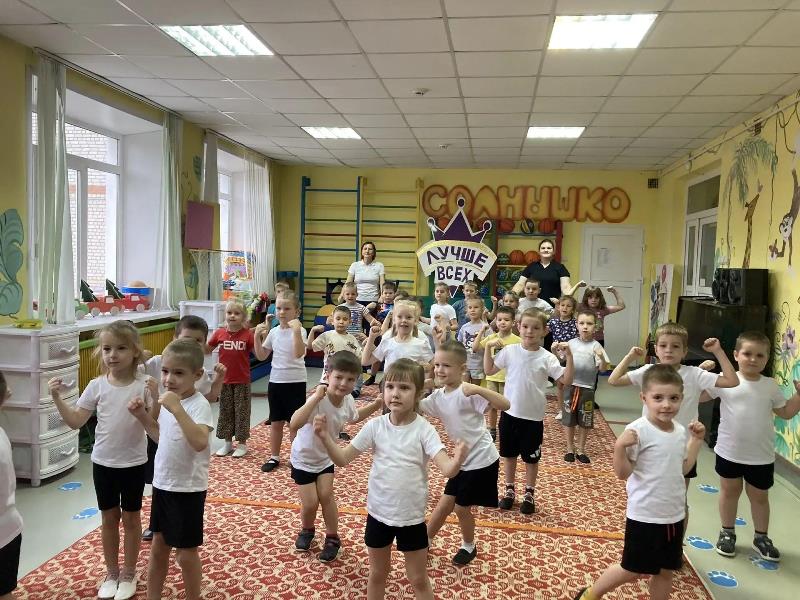 Утреннюю зарядку на свежем воздухе вместе с родителями и спортивные конкурсы сменил зажигательный флешмоб в спортивном зале.
