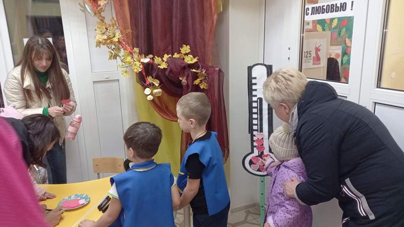 В холле детского сада стартовала акция «Папе с любовью!» В ходе акции, мамы, бабушки и воспитанники детского сада накалили термометр «Любящих сердец» до красна.