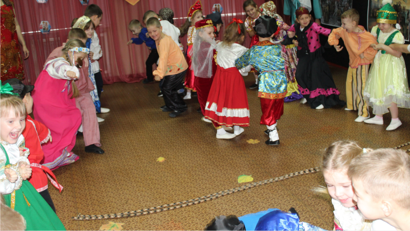 Торжественное открытие сменило дефиле костюмов народов, проживающих на территории Российской Федерации. Все дружно мы водили весёлые хороводы, играли в народные игры и исполняли патриотические композиции, посвящённые – России.