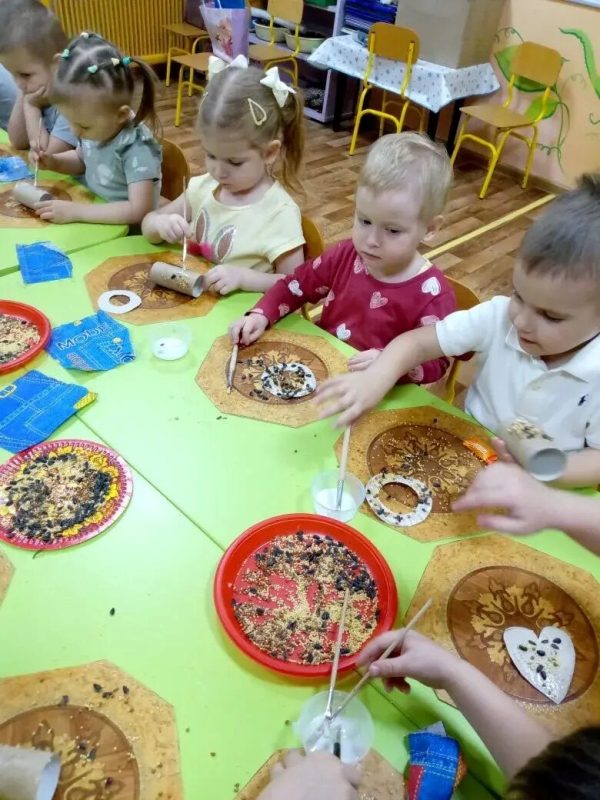 - Творческие занятия: Дети с удовольствием рисовали и лепили синичек, проявляя свои художественные таланты.