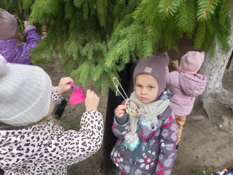 Угощения для птичек. В завершение ребята развесили кормушки на территории детского сада и наполнили их вкусными угощениями для синичек. Теперь наши пернатые друзья смогут наслаждаться лакомствами, а дети будут наблюдать за ними.